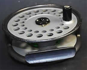 若干肉厚のアルミで覆われたバイカウントのシンプルな機構は、古い時代のイギリス製品の特徴が現れたリールでトラブルが少ない極めて耐久性の高いモデルです。このリールはバイカウント・シリーズ中最も大きなサイズです。 リール重量約163グラム、本流や湖での使用に適した#8〜#10ライン用のサイズ。スプール外径約86ミリ、内幅約24mm、リール本体の外径は約99mm。バッキング・ラインが巻かれています。リールのフット・サイズは約57mmx15mm。 このリールは右巻きにセットされていますが、左右交換が可能です。外観からはかなり使用頻度が少なく状態はかなり良好です、本体にゆがみや目立つような大きな傷は見られません。 |
