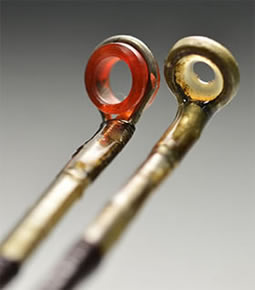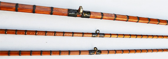 ラッピングやパーツ等の全ての部分がオリジナル状態を良く保っています。ロッドの表面にも目立つような傷やスレッドのまき直し等のレストアーの痕跡が見られません。オリジナル性を保った良好な状態のアンテイーク・ロッドです。ストリッピング・ガイドは約6mm(外径)の綺麗なライト・オレンジのメノウ・ガイドが取り付けられています。他のガイドはハーデイのブリッジ・リング・タイプが取り付けられています。 |