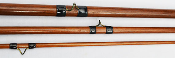 | ロッドの表面には目立つような傷や塗装面の剥離などは見られません。スレッドは一か所巻き直してありますが他はオリジナルの状態です(その個所を識別する事は難しいと思われます)。尚、これ程の古いグリーン・ハート・ロッドではしばしばストリッピング・ガイドがスネークを使用しています。 |
