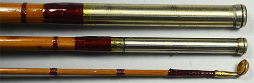 トップ・ガイドはストリッピング・ガイドとセットのメノウ・ガイドが取り付けられています。テイップ・セクションにショートは見られません、オリジナルの状態と長さです。ニッケル・シルバー製と推測されるデラックスなフェルールの差し込みにも気になるほどのゆるみやガタツキは感じられません。 |
